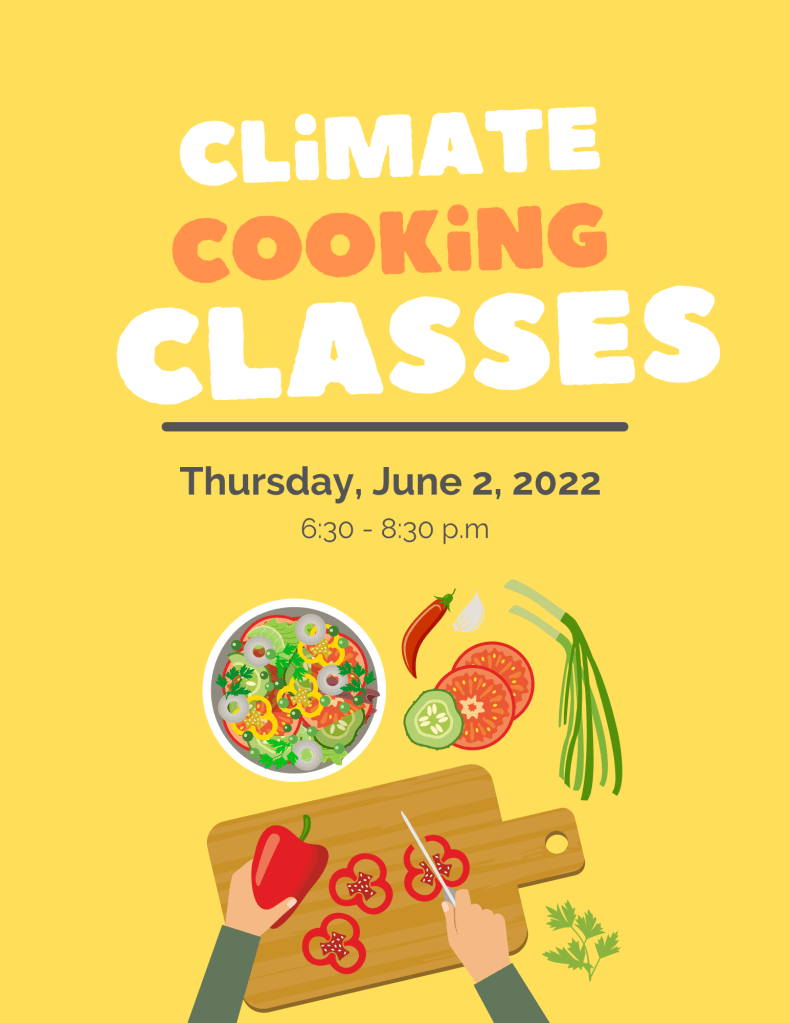 Join Climate Classes and Common Good City Farm on Thursday, June 2, from 6:30 – 8:30 p.m. for a special cooking class. Participants will have the opportunity to cook with ingredients from Common Good City Farm and other local growers, discuss the effects of agriculture on climate and how we can become connected to our food sources, and to conduct a waste audit.